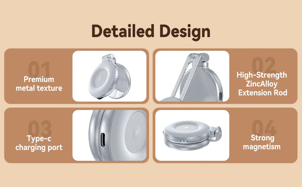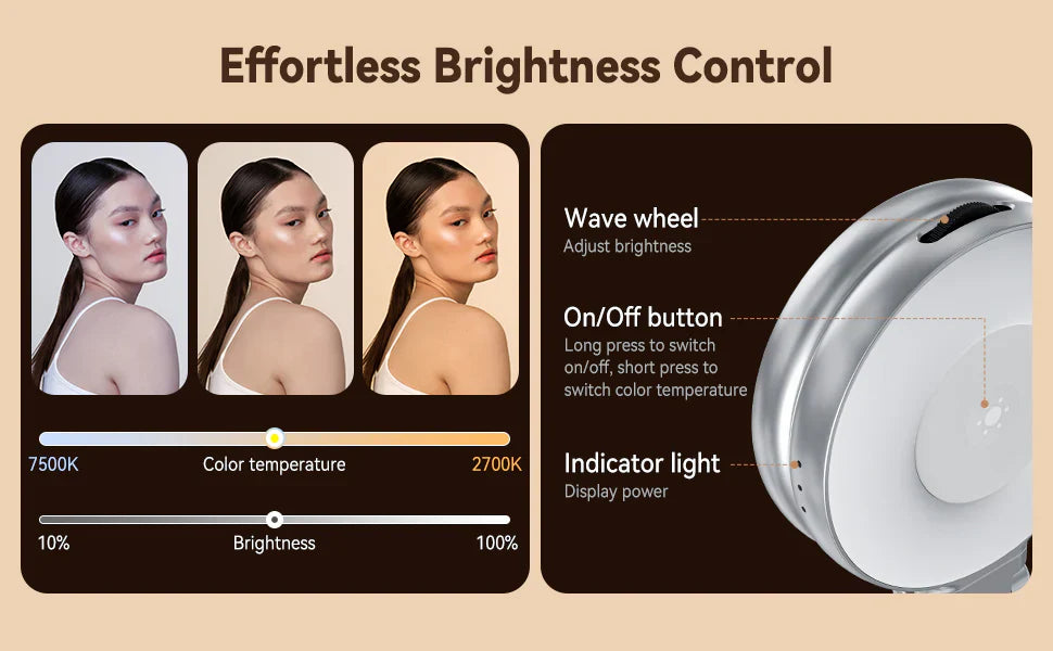💡 3 أوضاع إضاءة - دافئ، طبيعي، بارد (2700 كلفن - 7500 كلفن)