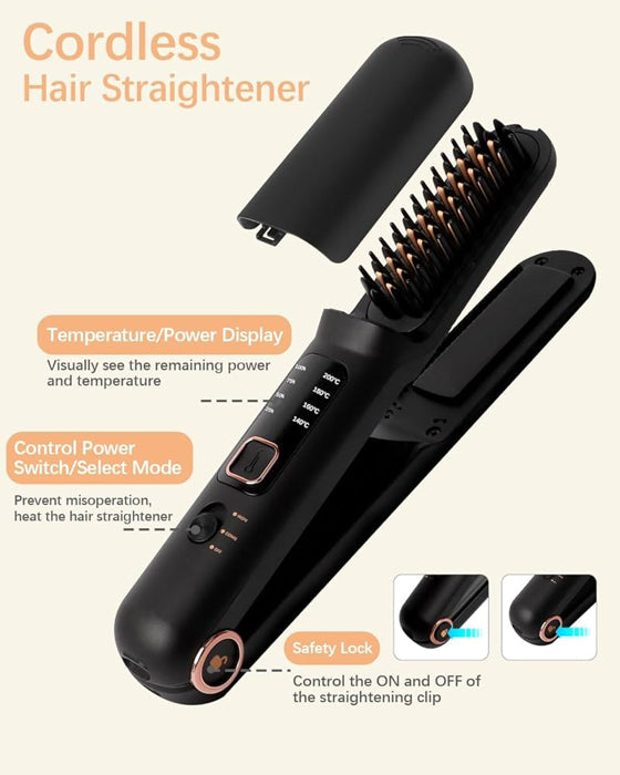 ✨ Achieve salon-quality results with the 2-in-1 Cordless Hair Straightener Brush (Model LH2201)—the perfect tool for smooth, sleek hair wherever you go!