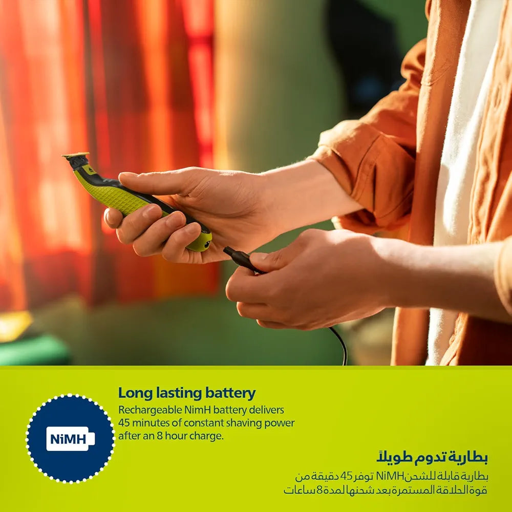Fast-moving cutter with a glide coating and rounded tips — trim and shave without irritation. -